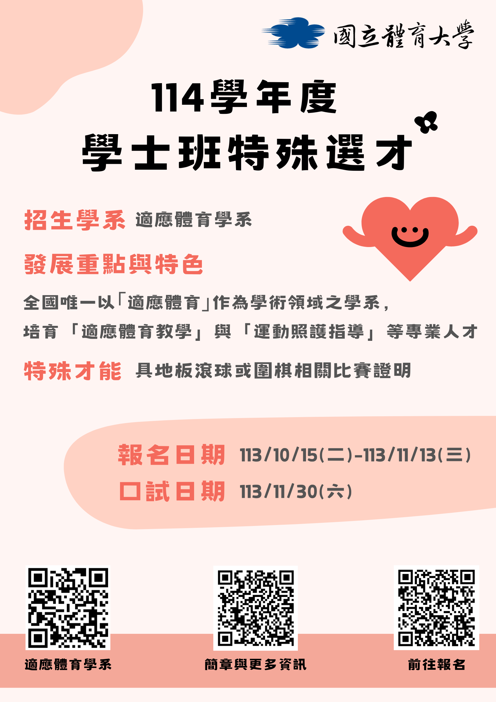 國立體育大學114學年度學士班特殊選才招生