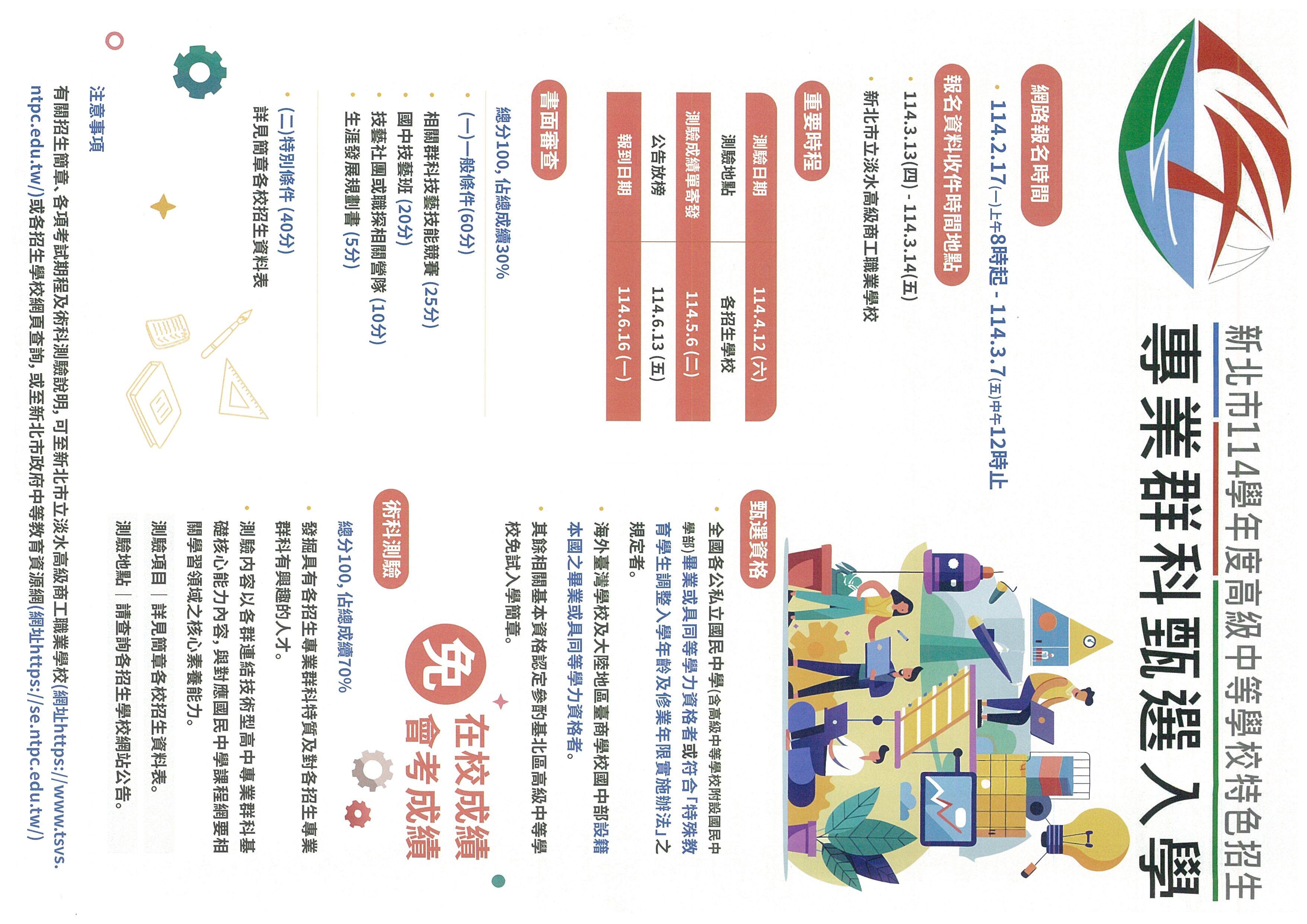 114學年度新北市特色招生專業群科甄選入學簡章