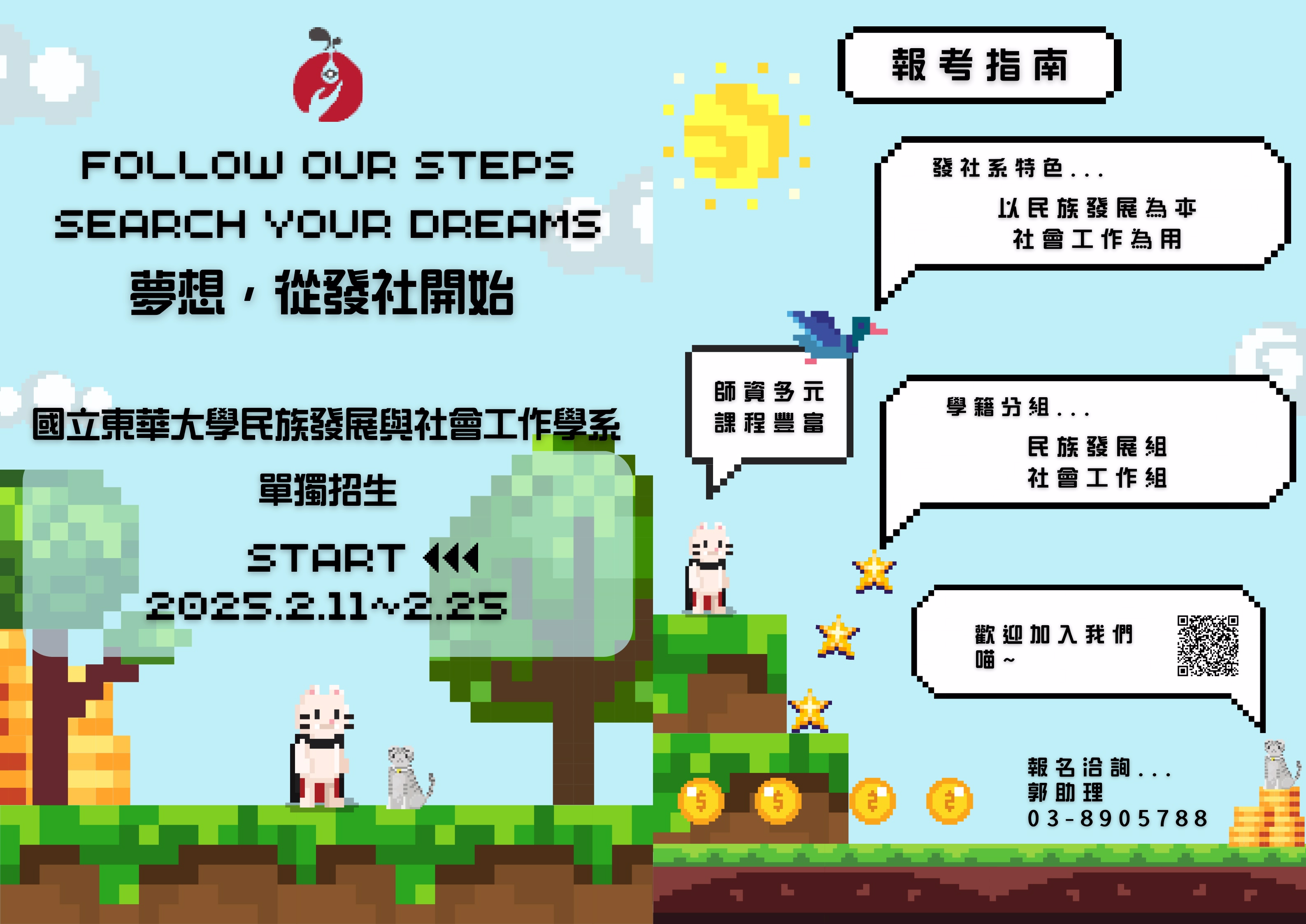 國立東華大學原住民族學院民族發展與社會工作學系114學年度單獨招生訊息