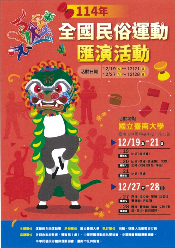 【體】運動部全民運動署114 年全國民俗運動匯演活動暨民俗運動經典展演公告